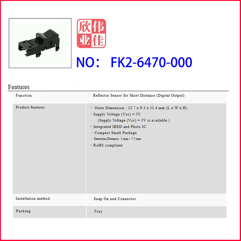 KUA0055A是STANLEY ELECTRIC CO.,LTD.生产的反射式光电传感器,适用于1-7.5mm范围的反射检测。以下是具体信息: